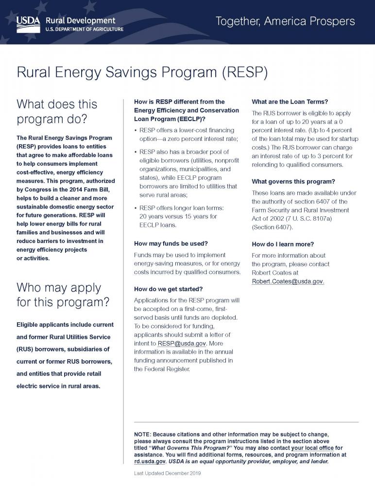 USDA RURAL ENERGY SAVINGS PROGRAM (RESP) WEBINAR
